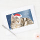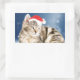 A Cute Cat wearing red Santa hat Christmas Snow Rectangular Sticker