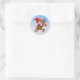 A cute Christmas Elf getting a ride on Rudolph Classic Round Sticker