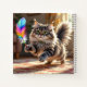 Adorable notebook featuring a sweet fluffy kitty cat having fun chasing a feather. Total cuteness.