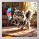 Adorable wall art featuring a sweet fluffy kitty cat having fun chasing a feather. Total cuteness.