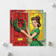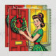 A sweet Christmas card that features a retro illustration of a mid-century woman hanging a holiday wreath on the front door. This card offers a nostalgic vintage vibe You can add a customized holiday greeting on the back or leave the little whimsical poem we put.