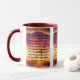 This mug features a daily thankful prayer over a biblical picture showcasing 3 crosses with sunrise background with a colourful theme. The rim & handle are glazed in matching colours available in 11-ounce or 15-ounce sizes microwave and dishwasher safe ceramic construction.