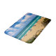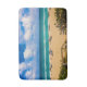 When you can’t get away for a day at the beach, keep the beach with you with the original photograph by ZoeSPEAK on this Bath Mat. It features a view of the ocean under a Florida blue sky filled with puffy white clouds. Sunbathers are lounging along the shoreline of golden coloured sand as the waves roll in. Sea grape leaves in the foreground grow along the dunes by the steps leading down to the beach.