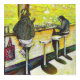 Original painting of two individuals are seated at a counter in a cozy diner. Bright yellow lighting illuminates the scene, creating a warm and inviting atmosphere. Painted by New York City, Fine Arts Artist, Gaye Elise Beda.