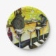 Original painting of two individuals are seated at a counter in a cozy diner. Bright yellow lighting illuminates the scene, creating a warm and inviting atmosphere.