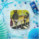 Original painting of two individuals are seated at a counter in a cozy diner. Bright yellow lighting illuminates the scene, creating a warm and inviting atmosphere.