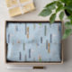This unique boating themed tissue paper features varied size seafaring vessels on a blue background - the pattern includes 2 cargo ships, 2 sailing vessels, 2 antique-style wood boats, 1 fishing boat, a rowboat and a houseboat - close inspection of the pattern reveals people enjoying "A Day On the River" © katz_d_zynes 2020