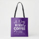 "A Day Without Coffee Is Like... Just Kidding. I Have No Idea." Print. This tote exhibits a cheerful and funny design that has an artistic type treatment print for someone who loves coffee. The background color can be changed to your desired preference. Thank you for the support and visiting my store - UniquelyDistinct. Feel free to transfer this design on other Zazzle products.