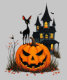 A Deer on a Halloween Pumpkin and a Haunted House