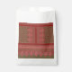 The design appears to be a traditional textile design. It features a symmetrical pattern with a central column and intricate borders on each side. The colour palette includes earthy tones like shades of red and brown, with detailed motifs in white and beige. The patterns consist of geometric shapes, diamond-like figures, and decorative elements that resemble floral designs.