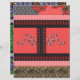 • Middle Section: A broad horizontal band in red with intricate white floral patterns and a black vertical stripe down the centre.