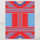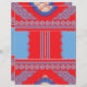 The design features a beautiful, symmetrical fractal-like design. It has intricate, lace-like patterns with a colour scheme of red, blue, and white. The symmetry and complexity of the design make it visually striking and interesting, often associated with mathematical beauty and artistic expression.