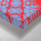 The design features a beautiful, symmetrical fractal-like design. It has intricate, lace-like patterns with a colour scheme of red, blue, and white. The symmetry and complexity of the design make it visually striking and interesting, often associated with mathematical beauty and artistic expression.