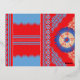 The design features a beautiful, symmetrical fractal-like design. It has intricate, lace-like patterns with a colour scheme of red, blue, and white. The symmetry and complexity of the design make it visually striking and interesting, often associated with mathematical beauty and artistic expression.