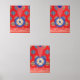 The design features a stunning fractal pattern. At the centre, there’s a circular motif in blue and white, surrounded by intricate designs in shades of orange, brown, and blue. The background is a rich red with gold star-like patterns scattered throughout. This symmetrical fractal design is visually captivating and often symbolises infinite complexity, whether in mathematics, nature, or art.