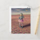 A disco astronaut in poppy meadow flying goldfish postcard