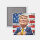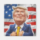 I hate even saying his name...but, it's a distressed American flag with you know who in front of it.