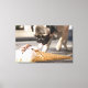 A dog eating an ice cream from a pavement canvas print