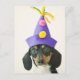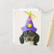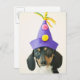 A dog wearing a funny hat postcard