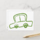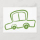 A drawing of a green car postcard