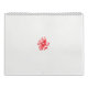 The design features a graphic representation of a flower with numerous petals. The petals are depicted with red scribble-like strokes, giving the impression of a sketch or an abstract painting. In the centre, there is a circular pattern in shades of pink and purple that suggests the flower’s core. The background is plain white, which contrasts with the vivid red of the petals.