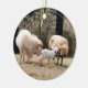 Our Appalachian ornament features Crinkles the Bold, our blackbelly ewe and Ramses our St. Croix ram with their newborn lamb Amenhotep, and on the reverse side, our rabbit who set off to see the world.