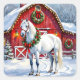 A Festive White Horse and Winter Barn Christmas Square Sticker