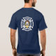 Firefighter flaming skull sets flames against fire dept maltese cross logo symbol of firefighting and tough enough to get the job done.