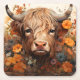 A Floral Highland Cow Series Design 3 Square Paper Coaster