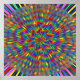 Different colours and shapes make up this delightful design that is given, not only a floral design, but almost a tie dyed look as well.