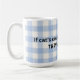 A funny cat themed mug with a blue gingham design to complement your kitchen. A perfect gift for a animal lover, cat mum, cat dad. This cat themed mug will most certainly put a smile on your face while drinking coffee, tea.