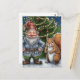 A happy gnome in a santa hat and an extra large squirrel in front of a Christmas tree AI generated art