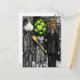 A garlic, an artichoke, and a spaghetti fork funny postcard
