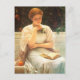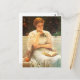 A Girl Reading Charles Perugini postcard. Oil on canvas from 1878. One of the most famous and beloved paintings of the Victorian era. A Girl Reading is a work by Charles Edward Perugini featuring a pretty young girl in a white Victorian gown calmly reading a book upon a marble bench in front of a lovely orange tree. The girl holds a sprig of orange blossoms in one hand while an orange sits beside her adding contrast to the bench. A lovely gift for fans of Victorian era art, Victorian paintings, reading, and Charles Perugini.