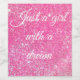 JUST A GIRL WITH A DREAM sparkle hot pink purple glitter wine label with elegant white writing.