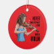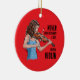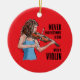 Illustration of a girl playing violin with a quote "never underestimate a girl with a violin". Personalized on the back of the ornament with a name and year. It's a great gift for someone that plays that instrument.