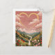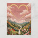 A young girl stands silhouetted against a breathtaking vista of a sprawling valley bathed in the soft hues of a pink sunset. Above her, amidst the fluffy clouds, a delicate golden heart shimmers, a symbol of love and hope. Did you know, the human heart beats approximately 100,000 times a day, tirelessly pumping life throughout our bodies? This design beautifully captures the boundless spirit of youth, the heart's endless capacity for love, and the awe-inspiring beauty of the natural world.