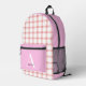 A Girl's Personalized Pink Gingham Monogram Printed Backpack