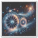 A luminous bicycle is depicted against a dark cosmic background filled with shimmering stars and vibrant colours. The wheels emit radiant light trails, creating an ethereal effect that enhances the magical nighttime atmosphere.
