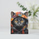A Gorgeous Black Cat in a Colourful Jacket Postcard