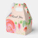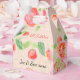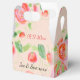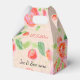 The sweetest little wedding guest favour box. Text for thank you, bride and grooms names, and date can all be personalised, or text is removable. Prettiest little design in pink coral rose flowered print. The background colour can be personalised to any colour of your choice.