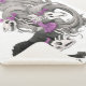 A dark gothic ink illustration of a girl and her creature playing dressup with bows
