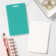 A gradient background blending blue into green. ID badge
