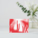 A graphic design featuring bold red and orange sha place card