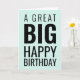 Birthday greeting card features modern bold font A Great Big Happy Birthday.