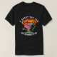 I give wanted to give this a 4 instead of a 5 because these Basic DARK T0shirts run unexpectedly SLIM or Narrow. Which is great if you do not have a potbelly, but I have a paunch. It isn't the shirt's fault that I've got a beer belly. The design and shirt itself is a quality cotton shirt. The color is more of a deep purple, but still a very pretty color. The Basic DARK T-shirts run a bit SLIMMER than the Basic Ts. The neck is a fraction narrower (or seems to be narrower) also. I'm a paunchy middle-aged woman and my neck is 12 inches (31cm) thick and the neckline fell about the same as in the photo of the man, and I had the desire to tug it a bit. So if you're a thick necked man or like loose shirts, be aware these are slimmer shirts. Once I get rid of my lockdown paunch it'll look great. The shirt washed well in cold water with no apparent bleeding. We don't have a dryer, so it hung dry. Did not shrink. Love the colors and the design. The design looks smaller on my shirt than it does on the model on-line. But still, it looks good on the shirt. The printing looks as it does on the model, just the size seems fractionally smaller. Washed garment in cold water, hung dry and design appeared unaffected.