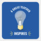 A Great Teacher Inspires Light Bulb Motivational Square Sticker