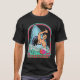 I give wanted to give this a 4 instead of a 5 because these Basic DARK T0shirts run unexpectedly SLIM or Narrow. Which is great if you do not have a potbelly, but I have a paunch. It isn't the shirt's fault that I've got a beer belly. The design and shirt itself is a quality cotton shirt. The color is more of a deep purple, but still a very pretty color. The Basic DARK T-shirts run a bit SLIMMER than the Basic Ts. The neck is a fraction narrower (or seems to be narrower) also. I'm a paunchy middle-aged woman and my neck is 12 inches (31cm) thick and the neckline fell about the same as in the photo of the man, and I had the desire to tug it a bit. So if you're a thick necked man or like loose shirts, be aware these are slimmer shirts. Once I get rid of my lockdown paunch it'll look great. The shirt washed well in cold water with no apparent bleeding. We don't have a dryer, so it hung dry. Did not shrink. Love the colors and the design. The design looks smaller on my shirt than it does on the model on-line. But still, it looks good on the shirt. The printing looks as it does on the model, just the size seems fractionally smaller. Washed garment in cold water, hung dry and design appeared unaffected.