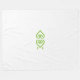 The design features a symmetrical emblem with a blend of geometric and organic shapes. At the centre, there are two mirrored abstract designs that look like stylised foliage or scrollwork, enclosed within a diamond-shaped border. Above this central emblem, there’s a smaller element resembling an upward-pointing arrow, crafted in a similar design style. The colour scheme includes two shades of green on a white background.