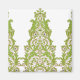 This design depicts an intricate and ornate floral pattern. The design features symmetrical arrangements of vine-like elements with delicate leaves and flowers. The predominant colours are shades of green, with hints of pink and white, creating a harmonious and elegant composition. The pattern is highly detailed, with intricate linework and decorative flourishes throughout. It appears to be a classical and traditional design, reminiscent of vintage wallpaper or textile patterns.